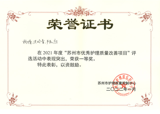 喜报!苏州九院在苏州市优秀护理质量改善项目评比活动中获一等奖