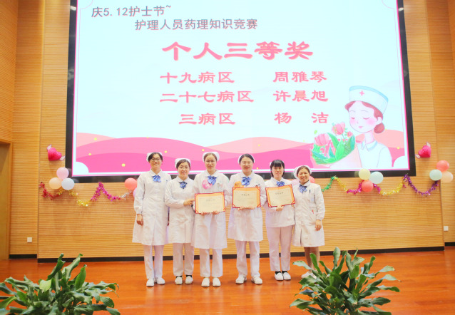 观众抢答环节,在场人员积极参与、争先恐后、各抒己见,充分展现了医院护理人员蓬勃向上的精神面貌!经过激烈的角逐,外科代表梦之队以最高分荣获团队一等奖,内科代表双流队、对对队分别荣获团队二、三等奖。胸外科张艳荣获个人一等奖,新生儿科周美芹、神经内科吴双荣获二等奖,骨科周雅琴、呼吸内科许晨旭、ICU杨洁荣获三等奖。