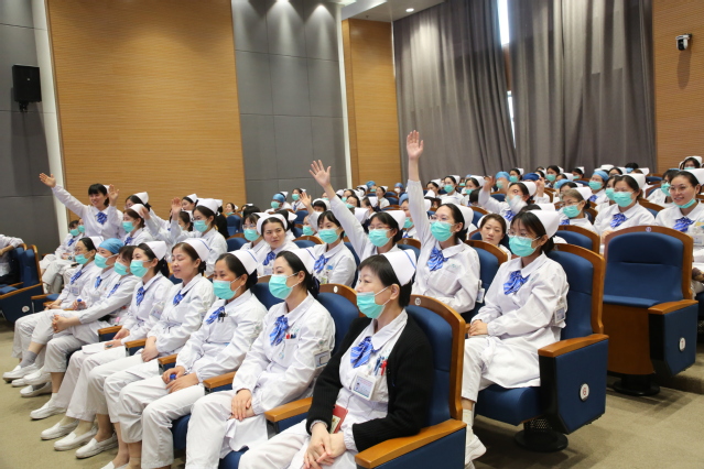 比赛现场,苏州九院护理部主任肖佩华,团委书记陆莹,护理部副主任徐敏玲、李莉,大科护士长陆龙妹、赵柳华、朱红,以及各病区护士长担任嘉宾,为参赛队伍加油鼓劲。同时,各科室230余名护理人员到现场参与学习观摩。比赛现场气氛活跃、热闹非凡。