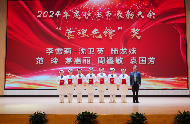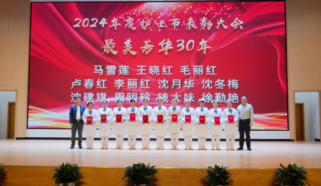 获表彰的“最美芳华30年”护士,苏州市优秀护理管理者,吴江区优秀护士长、吴江区优秀护士,医院“十佳护士”、团队之星奖、管理先锋奖、新秀蓓蕾奖等上台领奖。