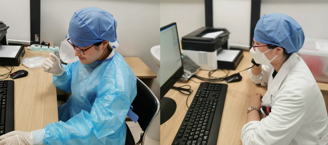 模拟场景为发热门诊医生在接诊发热患者时发生口罩脱落,医生立即脱离暴露现场或立即佩戴合格口罩脱离暴露现场并尽快报告新冠防控办、感染管理科等管理部门。防控办、感染管理科在接到报告后,组织医院专家组评估暴露风险。专家组根据暴露者所处环境、暴露环节及周边区域已陆续出现新冠病毒确诊患者的情况组织讨论,确定该暴露风险较高,并尽快对暴露源进行新冠核酸、抗体检测,最后确定结果均为阴性,暴露医务人员可解除隔离。