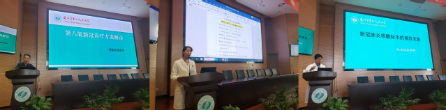 培训会上,向全体医护人员解读了《新型冠状病毒肺炎诊疗方案(试行第八版)》,并指出**版与之前版本的更新之处。再次强调了发热病人的分诊流程、新冠肺炎核酸标本的规范采集及秋冬季新冠的职业防护等感控措施。并在培训后进行了随堂测试。