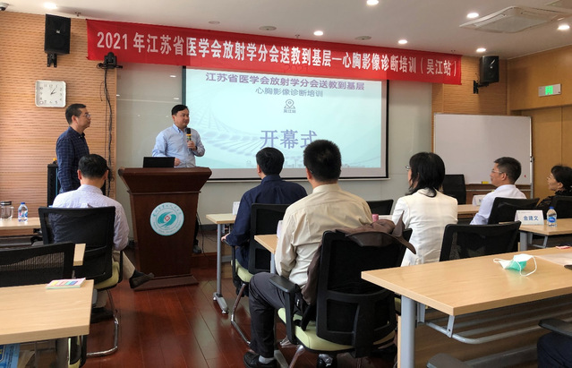 5月7日下午,由江苏省医学会放射学分会主办、苏州九院承办的“2021年江苏省医学会放射学分会送教到基层—心胸影像诊断培训会(吴江站)”在苏州九院行政教学楼顺利举办。来自苏州九院及各医联体单位的近百名医务人员参加了培训。苏州九院党委副书记、副院长沈根海致欢迎辞。