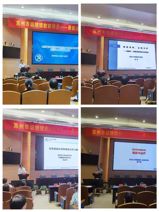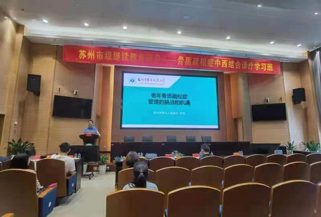 首先由苏州九院副院长郎建华作简要的开幕致辞,随后分别由中华医学会骨松与骨矿盐疾病分会科普与继教学组副组长吴永华教授、中华医学会骨质疏松和骨矿盐疾病分会副主委徐又佳教授、江苏省医学会骨质疏松与骨矿盐疾病分会现任主任委员成金罗教授、中华医学会骨质疏松和骨矿盐疾病委员会第三、四、五届委员会副主任委员林华教授、中华医学会骨质疏松和骨矿盐疾病分会委员程群教授、江苏省中西医结合学会风湿病专业委员会副主任委员武剑副教授,以及本院老年医学科、全科医学科主任、大内科主任吕荣主任、影像科主任计一丁主任、中医康复科主任杜欢主任、药剂科副主任沈明丰主任进行授课,从骨质疏松的发病、影响学、相关诊疗指南及药物治疗进展等方面深入剖析,分享专家们多年临床应用的宝贵经验,使从事相关工作的医学同道受益匪浅。