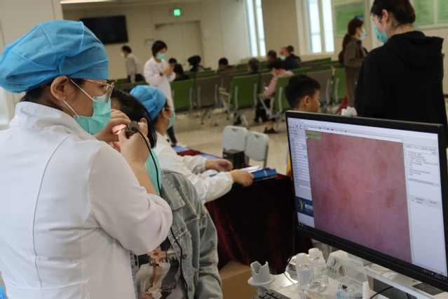 5月20日上午,皮肤科在苏州九院门诊楼举办公益义诊宣传活动,在皮肤科主任凌昕科的带领下,医护人员向广大群众宣传皮肤、毛发、甲的科学保健和护理知识,并为患者提供专业的临床诊疗建议,为部分咨询患者进行免费皮肤镜检测及VISIA检测,发放科普宣传手册和精美的功效性护肤品。