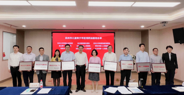 10月14日,苏州市儿童青少年近视防治基地授牌仪式在苏州大学附属独墅湖医院举行,苏州九院成为首批9个防治基地之一。苏州九院党委副书记、副院长沈根海参加授牌仪式。