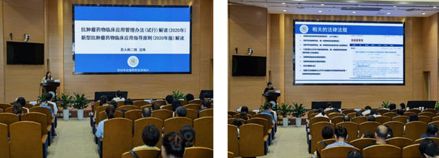 苏州大学附属第一医院药学部主任药师郑晓娴、苏州大学附属第二医院副主任药师沈珠、苏州大学附属第二医院药剂科副主任药师魏淑波分别就麻精药品的临床合理应用、国家抗肿瘤药物临床应用管理办法及指导原则(2020版)解读、特殊药品检查过程中问题分析及表格填写注意事项等方面进行了报告分享与精细指导。