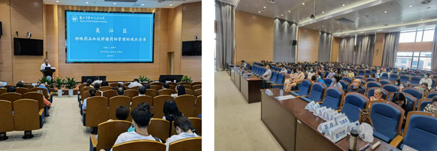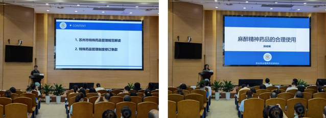 会议下半场由苏州九院组织人事处朱磊主任及医务处李莉副主任主持,以特殊管理药品、麻醉和****、抗肿瘤药品为主题,各位专家作精彩报告并进行深入探讨。
