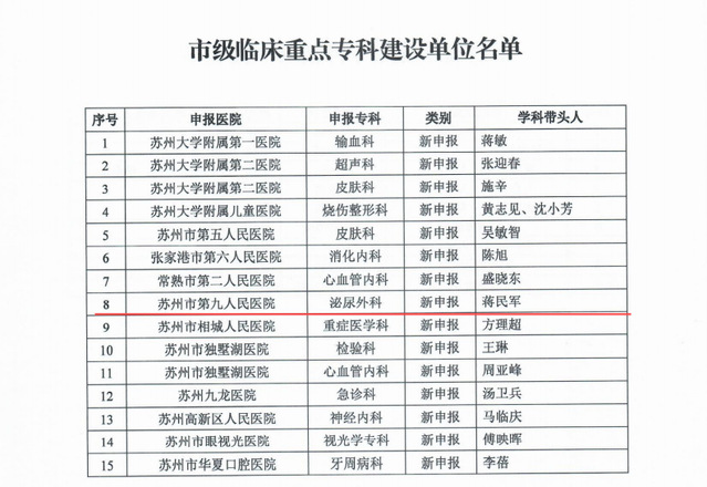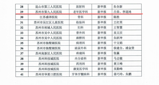 1月29日,苏州市卫健委公布了2021年度苏州市临床重点专科评审结果,全市41个新申报专科评审合格确认为市级临床重点专科,34个满期复核(含整改) 专科评审合格继续确认为市级临床重点专科;15个新申报专科与市确认为市级临床重点专科建设单位。苏州九院老年医学科新确认为市级临床重点专科,医学影像科继续确认为市级临床重点专科,泌尿外科新确认为市级临床重点专科建设单位。