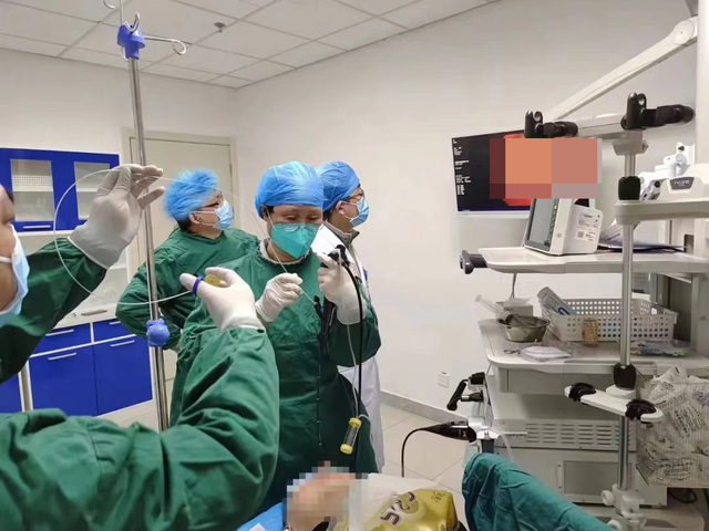 2月27日,宋卫珍副主任医师领衔呼吸科团队,完成了泗阳县第一人民医院首例纤维支气管镜检查+肺泡灌洗术。患者是一位青年男性,因5天前醉酒后出现呕吐伴剧烈咳嗽,后出现发热,外院查血常规白细胞18.34×109/L、中性粒细胞比率83.7%,胸部CT提示右肺上叶炎性渗出,考虑吸入性肺炎。住院期间宋卫珍副主任医师牵头对患者病情进行详细探讨,制定了个体化的抗感染治疗方案。对患者进行纤维支气管镜检查,术中发现患者右肺上叶后段存在脓性分泌物,遂予右肺上叶后段进行负压吸引,并在该部位予刷检及肺泡灌洗术,术后安返病房。目前患者咳痰量较前明显减少,已无发热,近期复查血常规白细胞已恢复正常,中性粒细胞比率较前明显下降。
