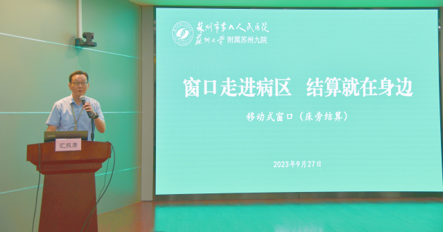 在现场评审会上,苏州九院副院长吴巧珍、郎建华、金建清分别介绍亮点项目“检查+速度=满意度(组合式窗口)”“药有温度 医心为民(延伸式窗口)”“窗口走进病区 结算就在身边(移动式窗口)”。