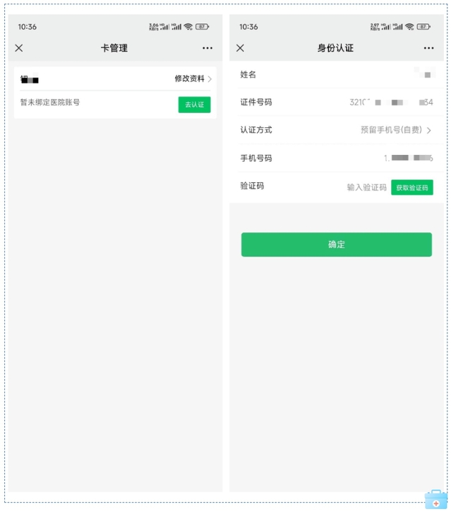 ✔点“去认证”获取对应的手机验证码,确定身份认证。