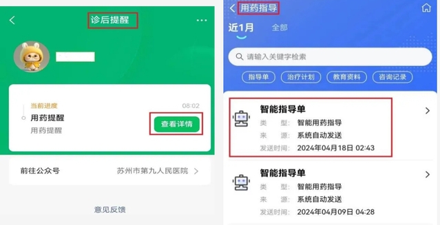 配药完成后,微信会在一日内推送服务通知,点击、查看详情,就能在跳转的界面中看到生成的“智能指导单”。