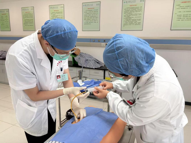 前期技能培训时,实习生系统学习了病历书写、体格检查、心肺复苏等临床技能,并在带教老师指导下完成操作考核。此次培训帮助实习生快速适应医院环境,树立职业规范,为后续临床实习奠定坚实基础。