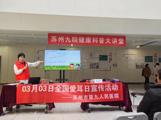 在第二十五个“全国爱耳日”来临之际,苏州九院【“海棠花红 医心为民”】健康科普大讲堂在门诊大厅正式开讲。本期讲座讲者为“海棠花红 医心为民”党员志愿者、耳鼻咽喉科陈红,她就《科学爱耳,倾听自然的声音》作专题讲座。