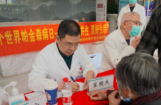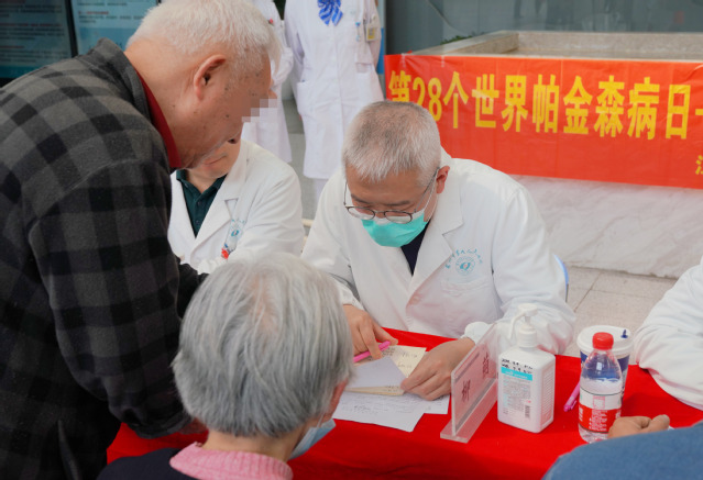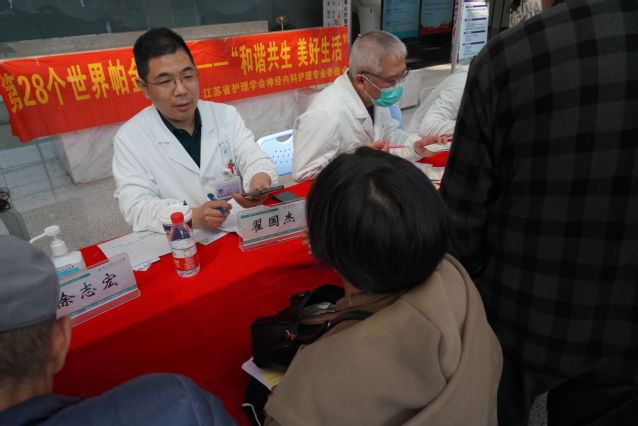 在第28个“世界帕金森日”来临之际,苏州九院神经内科为普及帕金森病知识,增强老年人自我健康管理意识,努力提高人民群众健康素养水平,在医院门诊一楼大厅开展义诊活动。今年的主题是“和谐共生,美好生活”。苏州市立医院柳荫主任、苏州九院神经内科徐元主任、翟国杰副主任等医护专家团队参加义诊。