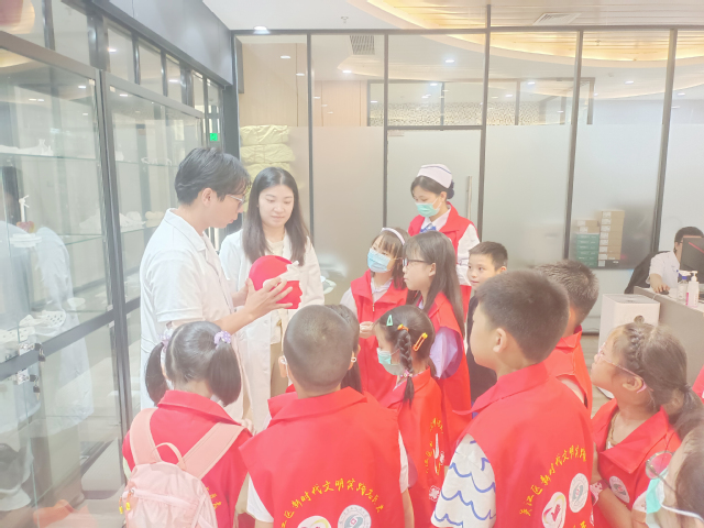 在急救技能培训中心,孩子们认真聆听了关于急救技能的讲解,了解了CPR(心肺复苏术)的流程。在老师的指导下,还在模型上模拟体验,亲手实践急救技能。这次经历不仅让孩子们了解了如何在紧急情况下保护自己和他人的生命安全,更让他们体会到了医者仁心的深刻内涵。