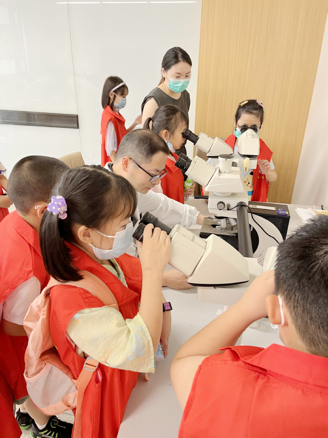 在病理科老师的带领下,孩子们参观了病理蜡片的制作过程,在显微镜下仔细观察了各种细胞的形态。通过病理高清扫描仪,孩子们更是在显示器上清晰地看到了细胞的内部结构,这种前所未有的视觉体验让他们对生命的奥秘充满了敬畏和好奇。