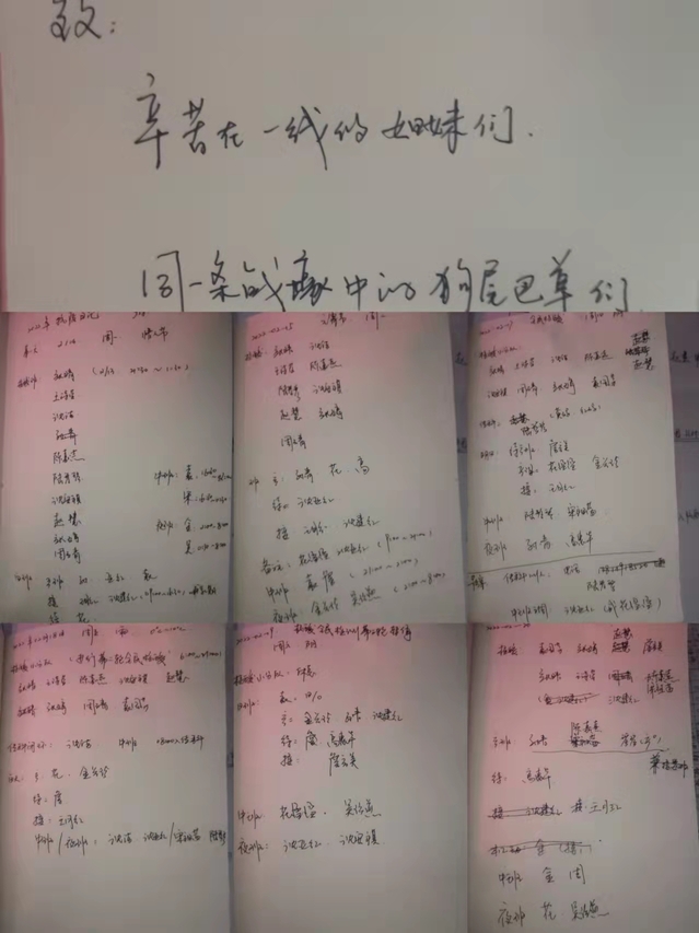 2月14日早上等我到达科室,护士长忙碌的身影早已出现,听同事说她五点多就到科室陪伴待命的姐妹们了。除了给核酸小组成员打气外她迅速投入到当天的工作安排中。外面“硝烟弥漫、战火纷飞”,而科室当天也依旧床位爆满、不减往日的热闹,由于科室剩下9人中除外白班6人,2人下夜班上晚上后夜,前夜只有1人,护士长又提出由她来顶前夜的班,而且考虑到上后夜的老师刚下后夜还有家里有两娃要照顾,主动把原本上到00:30的时间往后延到了02:00,为了可以让后夜的老师稍微多休息会。