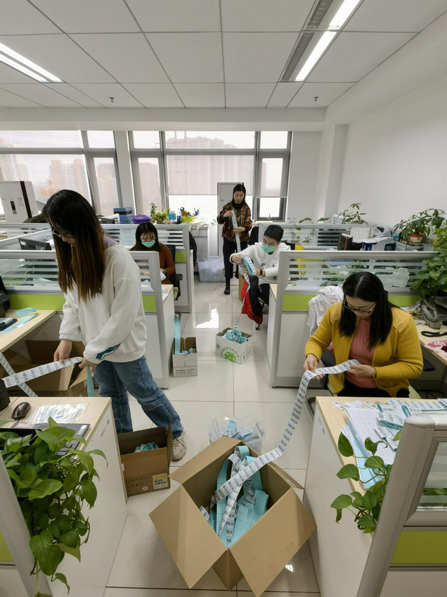 医务处的工作人员为提高效率开启了流水线工作模式,有负责电脑操作打印条码,有负责更换条码卷纸,有负责整理条码,有负责分装打包。工作中,大家总是调侃开了个条码打印工作室,接到了一个没有上限的大单子,即使连续不间断的工作20个小时,工作氛围仍然很和谐,没有人偷懒,没有人打退堂鼓。后来更多的科室加入了整理条码的队伍,这项枯燥乏味的工作,在这一刻多了一丝温暖。工作中出现机器超负荷运转而**了,条码卷纸供应不上了,那都不是问题,因为我们团结一致拧成了一股绳,所有问题都能迎刃而解。