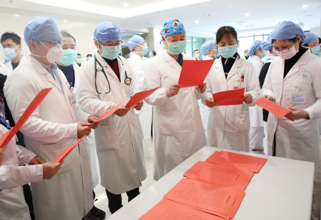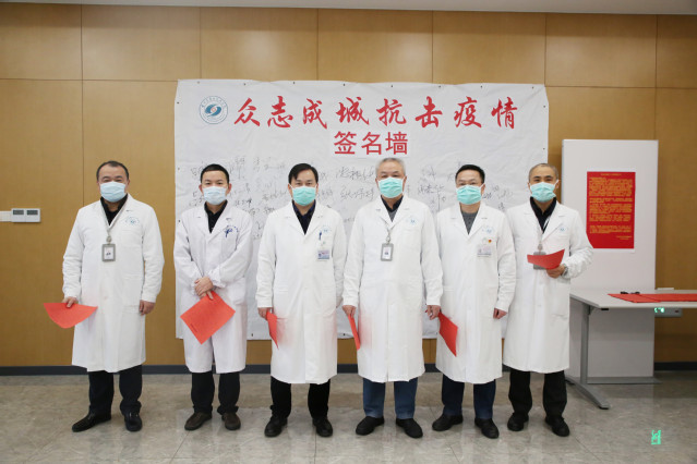 医院党委副书记、院长沈根海做“众志成城、抗击疫情”动员讲话,干部职工、共产党员代表们积极响应,在签名墙上郑重签下自己的名字,纷纷表示将服从命令、坚守岗位、恪尽职守,树立大局意识,以科学有效的方法和坚韧不拔的毅力铸成铜墙铁壁抵御疫情。