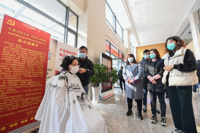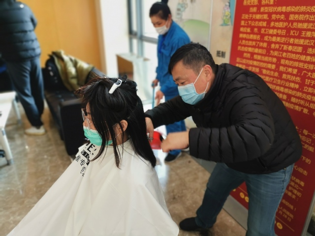 为了方便打理,也减少在病房的暴露风险,男医生们推了光头,女护士们剪去了长发。