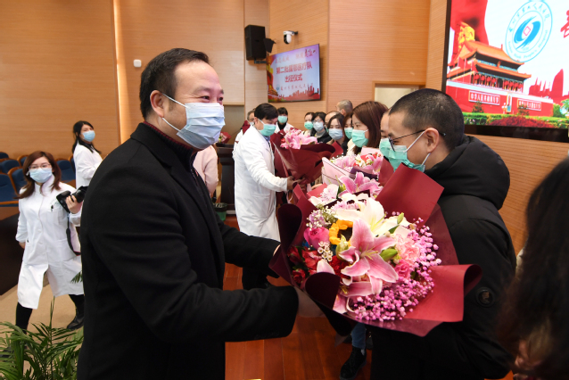 苏州九院党委副书记、院长沈根海也代表全体员工向奔赴湖北的全体医务人员表示敬意,反复叮嘱大家一定要保护好自己,平安归来。