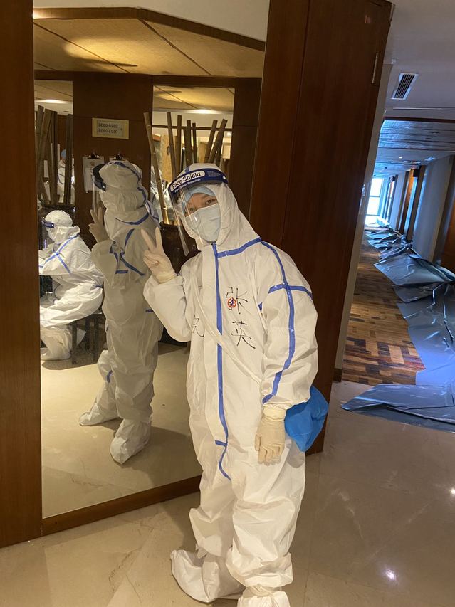 据了解,苏州九院先后于3月25日、31日分两批派遣了5名医务人员支援吴江海悦隔离点工作,张英是其中一位。