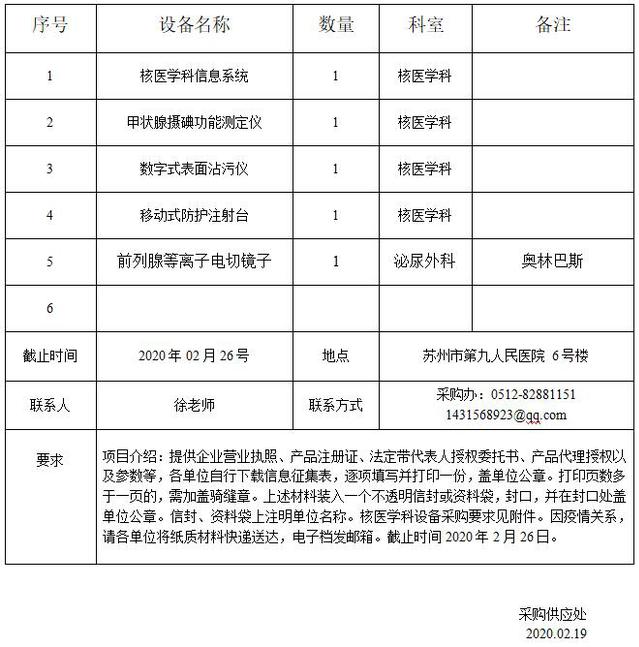 医疗设备信息征集表.doc