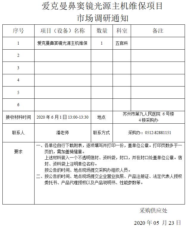 爱克曼鼻窦镜光源主机维保项目市场调研附件.rar