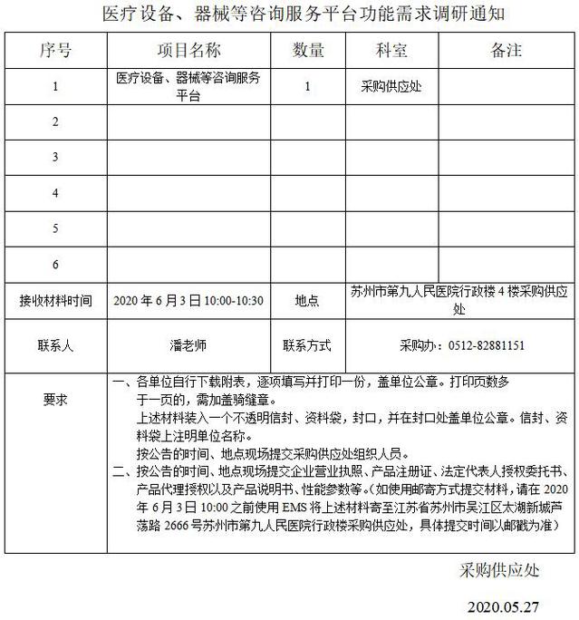 医疗设备、器械等咨询服务平台功能需求调研通知