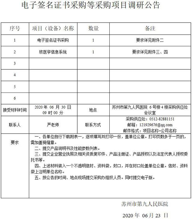 电子签名证书采购等采购项目调研公告