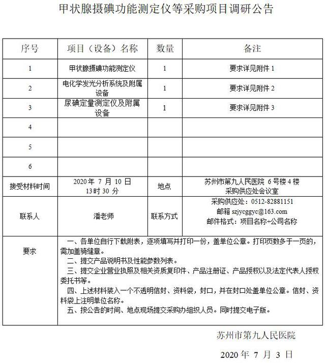 甲状腺摄碘功能测定仪等采购项目调研公告