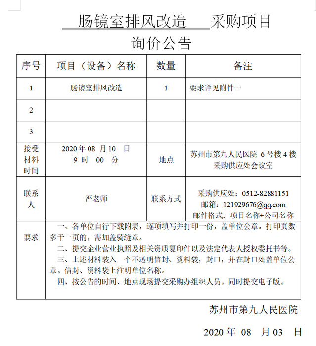 肠镜室排风改造采购项目
