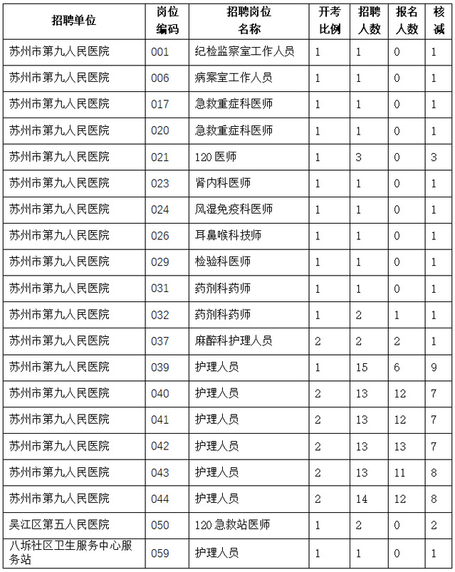 2022年苏州市吴江区北部健康医疗集团公开招聘合同制专业技术人员自2022年6月28日至2022年6月29日报名结束,共有20个岗位报名人数不足开考比例,根据规定,核减招聘计划,并公布如下: