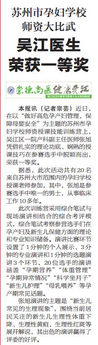近日,在以“做好高危孕产妇管理,保障母婴安全”为主题的苏州市孕妇学校师资授课技能训练营上,吴江区一院产科副主任医师张旭凭借扎实的理论功底、娴熟的授课技巧在参赛选手中脱颖而出,荣获一等奖。