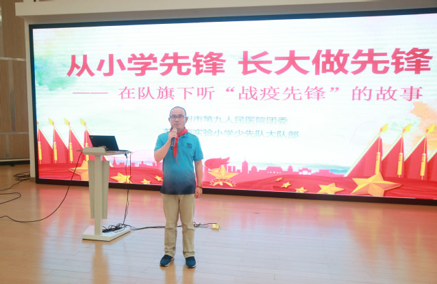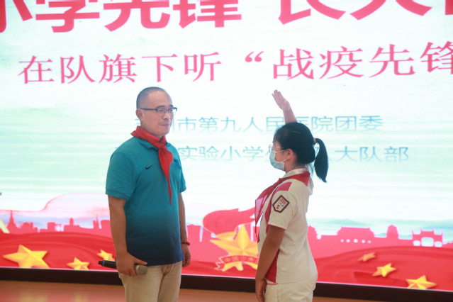 6月18日下午,受苏州湾实验小学邀请,苏州九院团委组织医院第二批驰援湖北医疗队队员、急救重症科副主任医师管光辉走进学校,参加“从小学先锋 长大做先锋——在队旗下听‘战疫先锋’的故事”的活动,为少先队员们分享湖北抗疫经历。