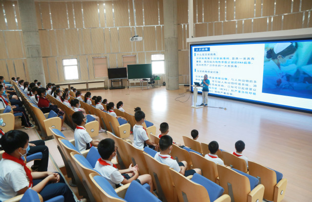 **,管光辉医生给少先队员们普及了关于新型冠状病毒的防护知识,并演示了正确佩戴口罩和洗手的方法。