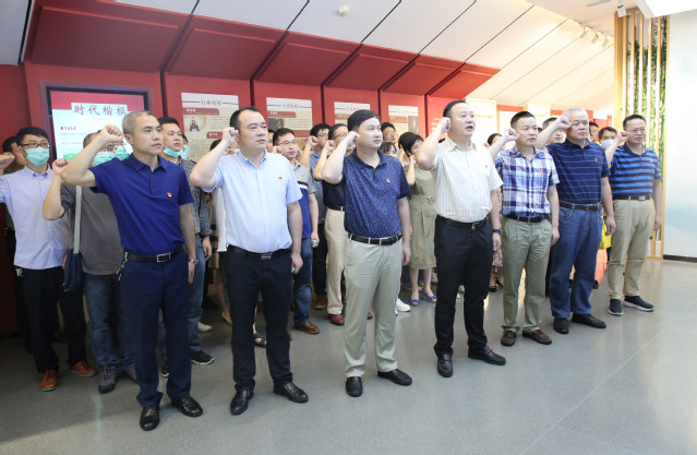 在庄严肃穆的大厅,沈宇书记带领全体党员面向党旗重温入党誓词,重忆入党初心和决心,一句句铿锵有力的入党誓词,进一步坚定了在场每一位党员干部 “不忘初心,牢记使命”的理想信念和责任担当。