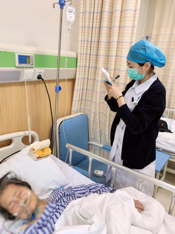 新春佳节,细心地查看每一个患者,忠于职守,全心全意为患者服务。(肿瘤内科41病区)