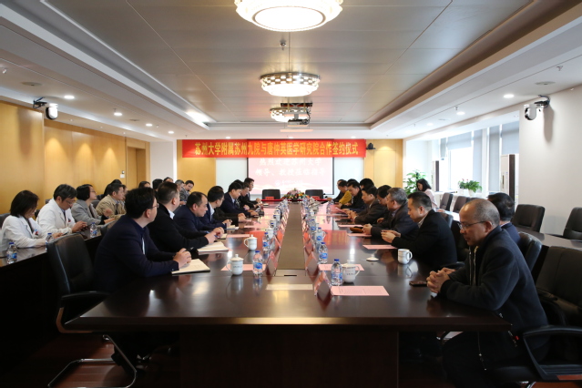 3月23日下午,苏州大学医院管理处处长、医学部副主任徐小乐、唐仲英医学研究院党委书记芮秀文、副院长(主持工作)戴克胜、唐仲英血液学研究中心副主任朱力以及唐仲英医学研究院黄玉辉教授、周泉生教授、杨林教授、王建荣教授、赵昀教授等一行专家莅临苏州九院,参加“一院一所”签约及**科技副院长、**教授聘任仪式。
