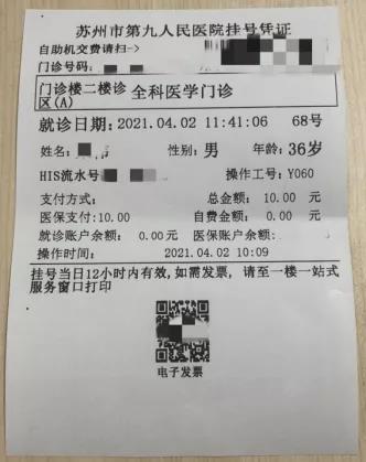 △苏州九院开具的电子票据