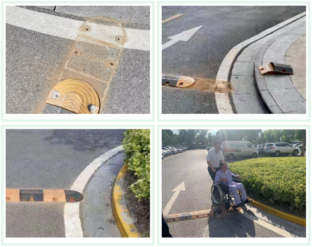 近日,在日常巡检工作中,苏州九院文明城市工作小组发现感染科大楼前停车场的减速带对腿脚不便坐着轮椅的患者及其家属造成了出行不便的影响。