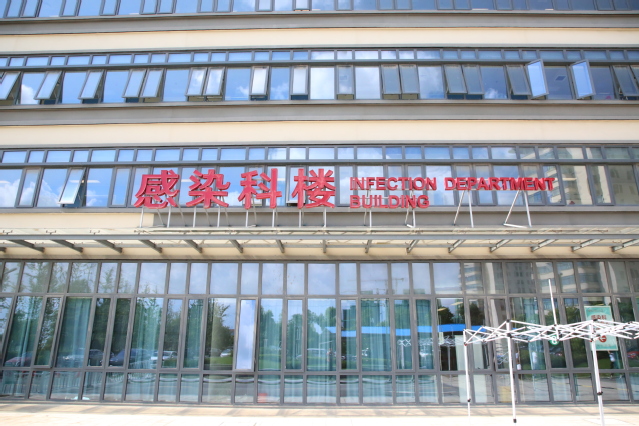 位于医院4号楼感染科楼大门前,地图标注绿底红字图样。