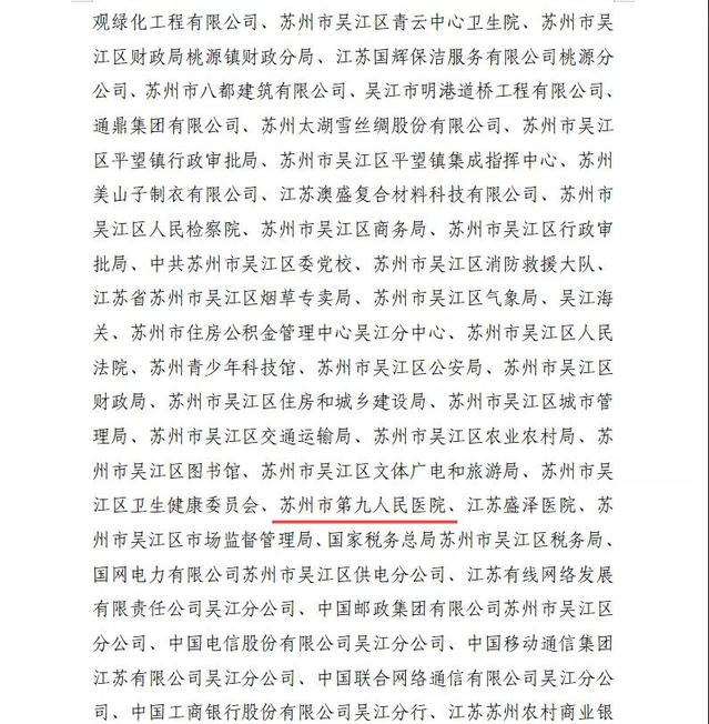 近日,苏州市精神文明建设指导委员会发布关于命名2018-2020年度苏州市文明行业、文明单位、文明村镇、文明社区、文明校园的决定,苏州九院获评“2018-2020年度苏州市文明单位”称号。