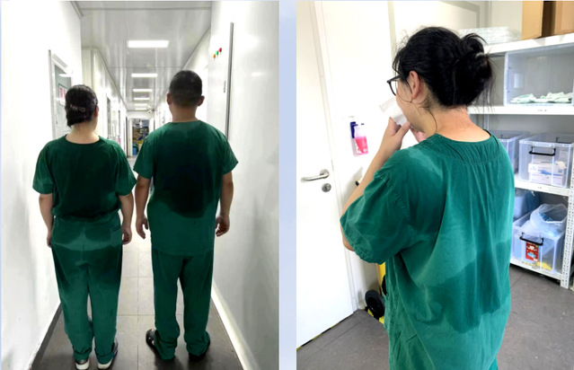 (三)水电维修班组保障着医院后勤设施的正常运行。高温天气下,很多户外设备的运行温度要达到70℃,打开机柜就是一股热浪,更不用说检修时在太阳底下一站就要十几二十分钟,往往是晒出一身汗,过一会儿汗又被晒干,在衣服上结成一层盐。
