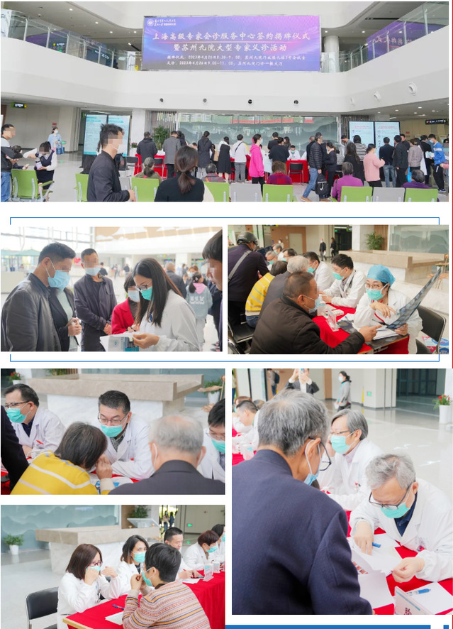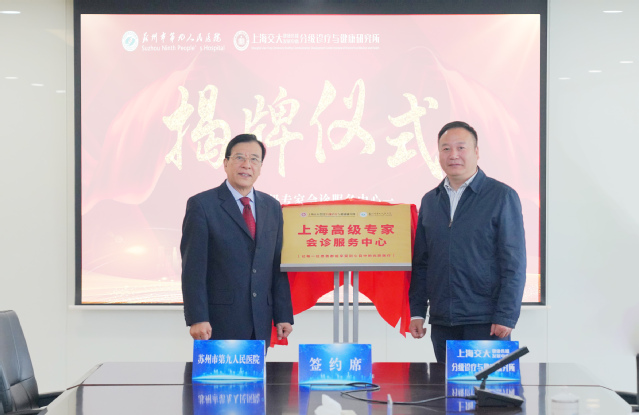 仪式最后,苏州九院党委副书记、副院长沈根海与上海交大健康传播发展中心分级诊疗与健康研究所所长程佑爽签订合作协议。区卫健委党委书记、主任,苏州九院党委书记沈宇与上海交大健康传播发展中心主任鲍勇共同为苏州市第九人民医院上海高级专家会诊服务中心揭牌,随后在门诊大厅开展义诊