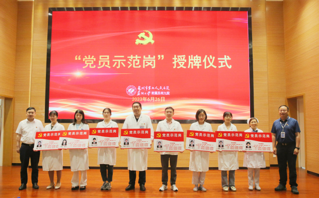 6月26日下午,苏州九院举行首批“党员示范岗”发布及授牌仪式。吴江区卫健委党委书记、主任,苏州九院党委书记沈宇为8个“党员示范岗”代表授牌。