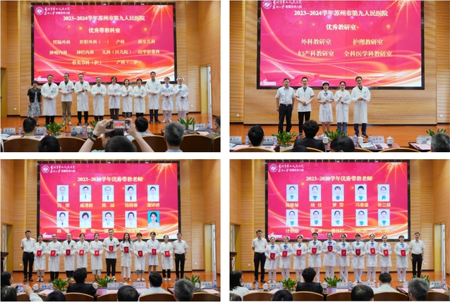 医院表彰“优秀带教科室”“优秀教研室”“优秀带教老师”“优秀任课老师”“第四届教学周师资竞赛获奖老师”等获奖集体和个人。苏州九院外科教研室教学秘书傅卫代表优秀教师发言,分享如何成为一名优秀的教育工作者。苏州医学院领导,苏州九院院领导班子和中层干部,吴江北部健康医疗集团成员单位领导以及教师代表参加活动。