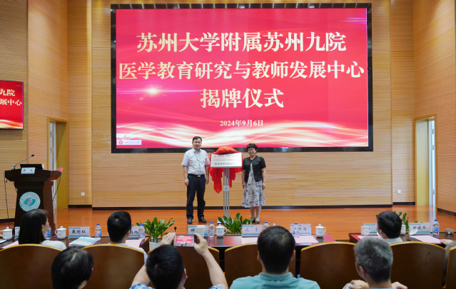 会上,“苏州大学苏州医学院 医学教育研究与教师发展中心 附属苏州九院分中心”揭牌。